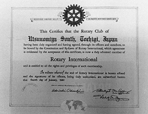 | 1982年1月4日 | 宇都宮南ロータリークラブが、R.I加盟の認証を受ける。 | |
